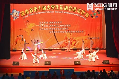 寒冬时节“星城论剑”,各路英豪以武会友。11月22日晚,湖南省第十届大学生运动会武术比赛在湖南广播电视大学揭开战幕。来自湖南省31所高校的“武林高手”齐聚一堂,以武会友,展现当代大学生昂扬向上的青春活力。明和集团凭借强大的综合实力,独家承接了本次运动会开幕式和比赛活动的舞美设计、电子显示等系列声光电系统工程和技术保障。